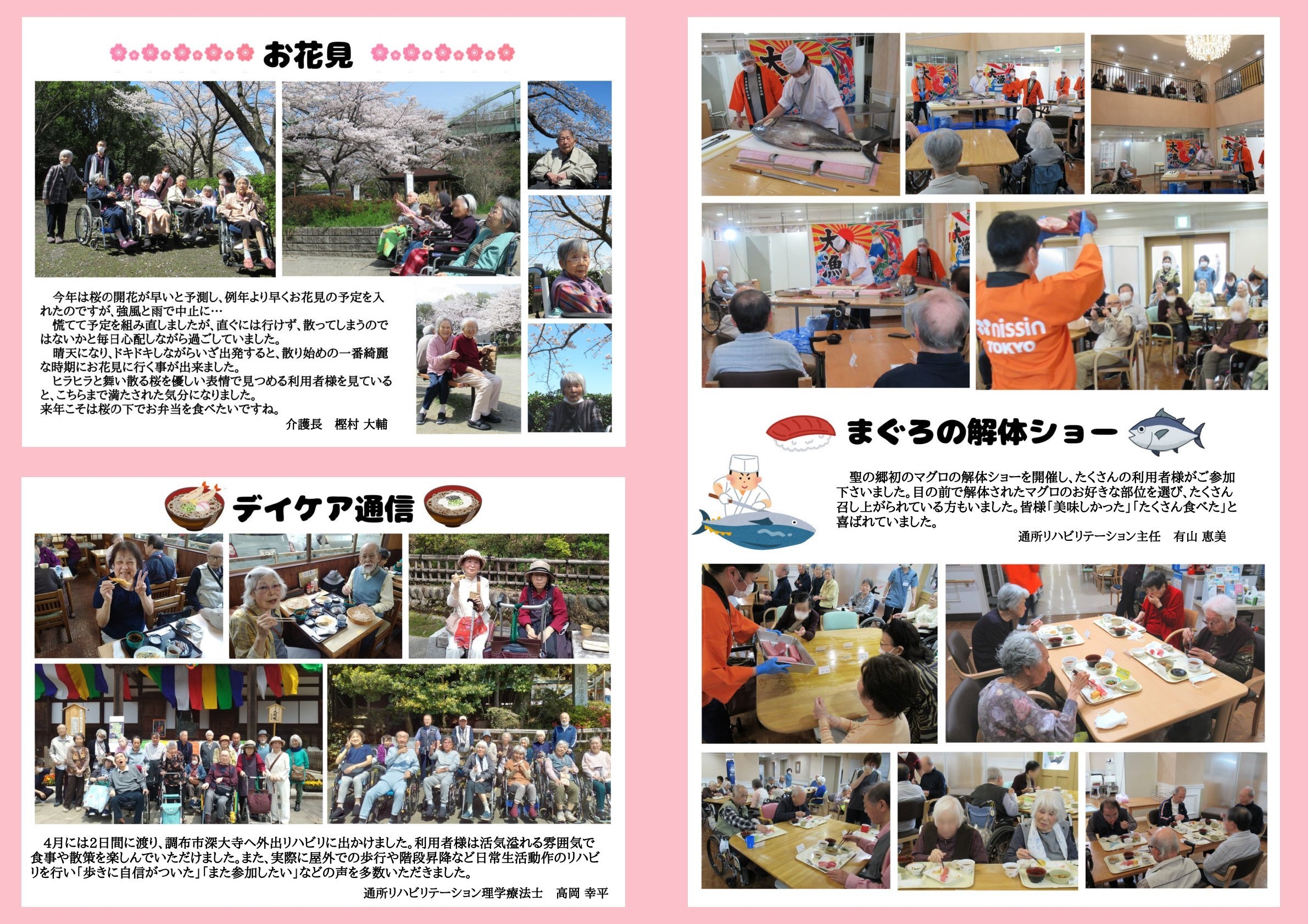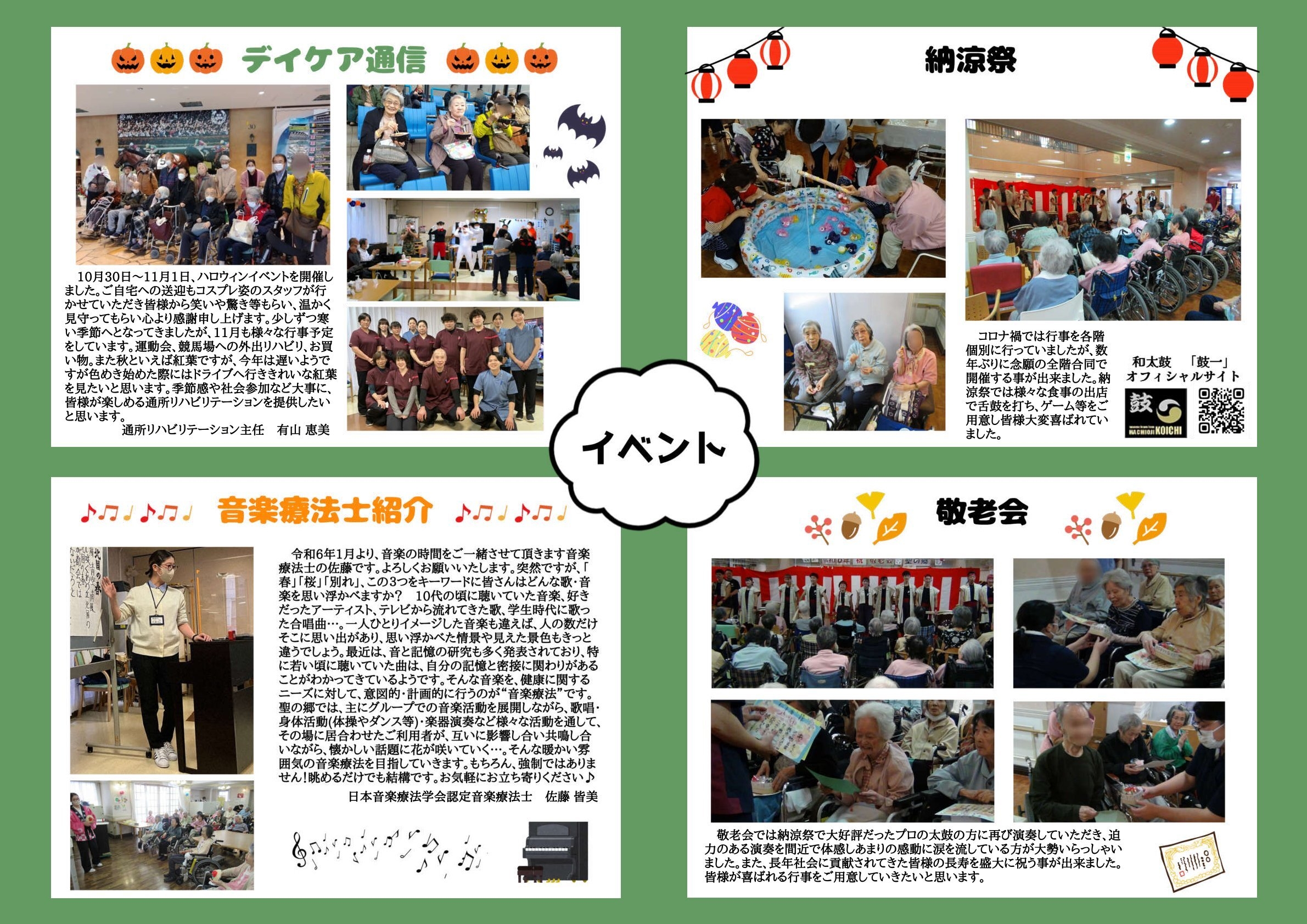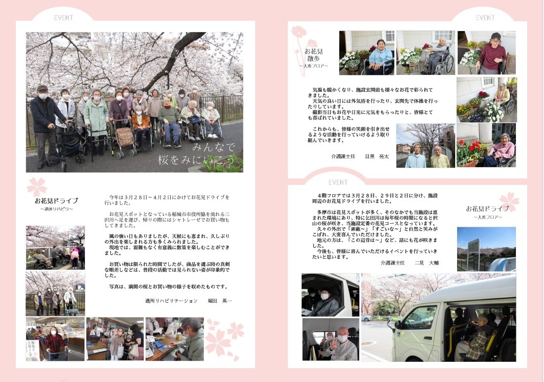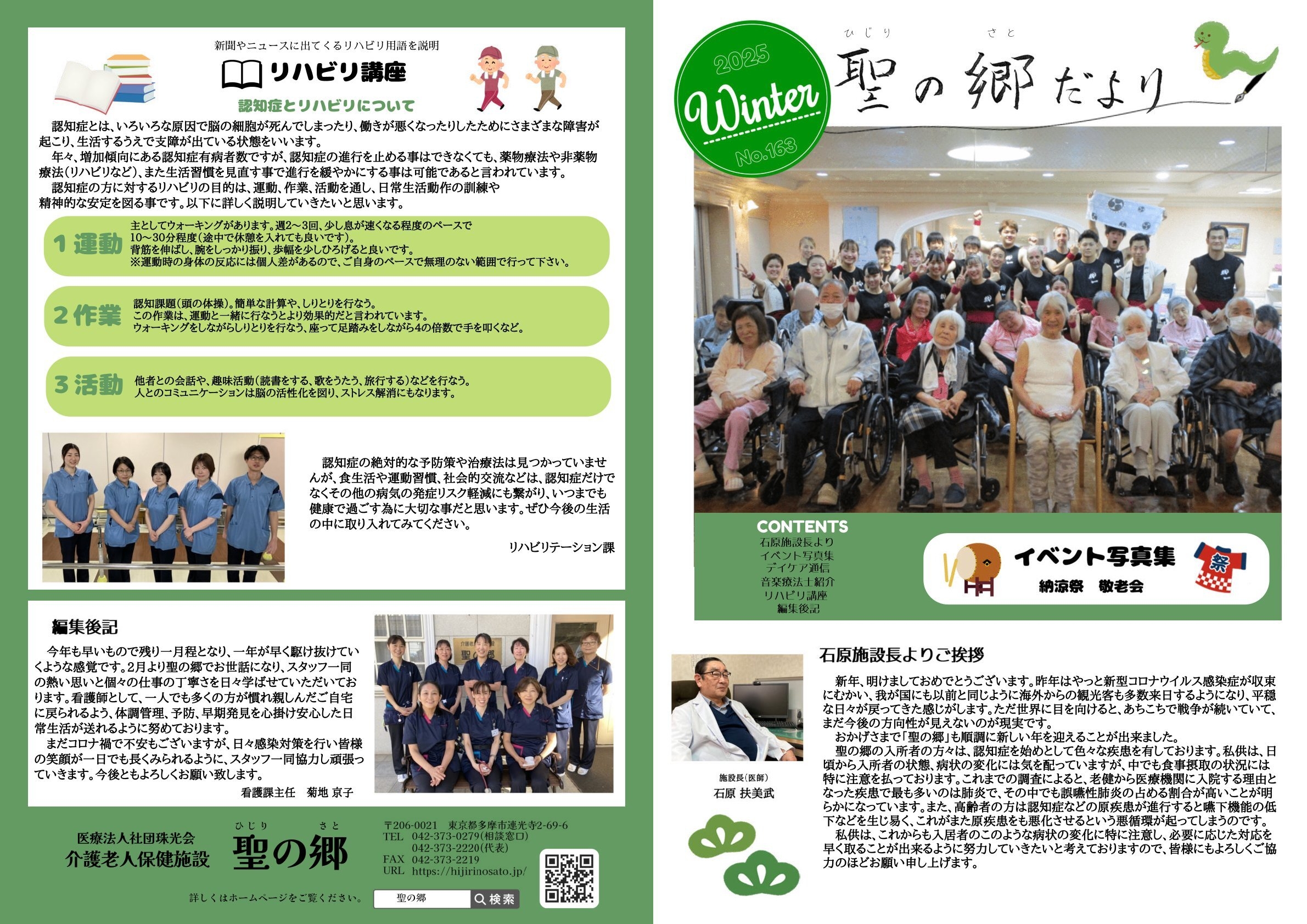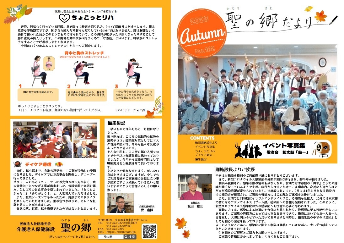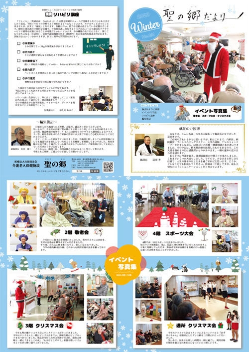 イベントの様子や、職員紹介、施設長より本の紹介、季節に合わせた記事などを載せています。